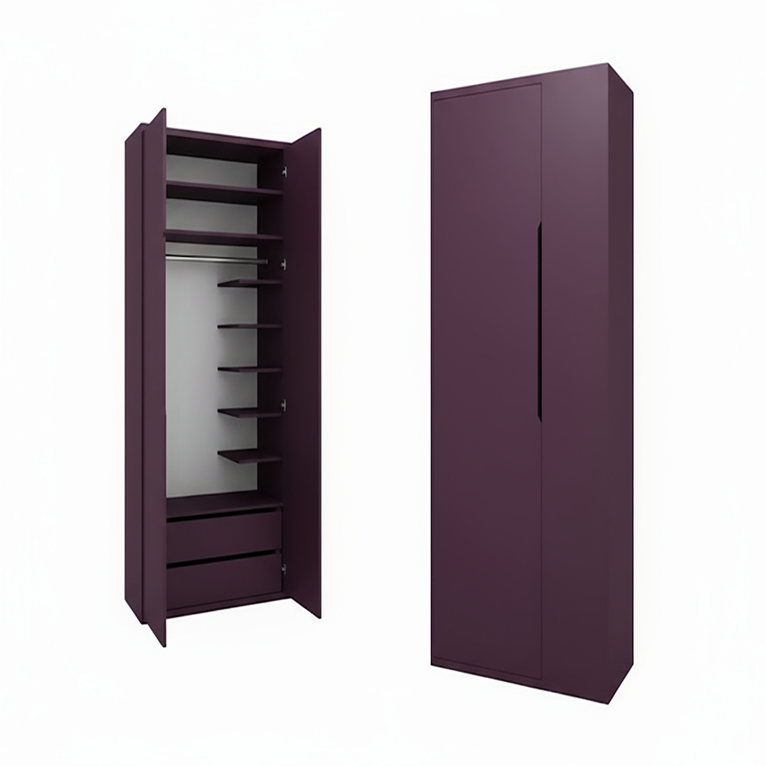 ابعاد تخت خواب: 155 × 215, ابعاد کمد لباس سمت چپ: 50 ×210 × 90, ابعاد کمد لباس سمت راست: 60 × 210