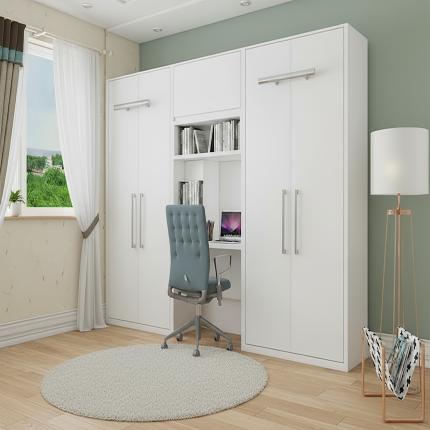 کمد لباس دخترانه بزرگ با میز آرایش دو قلو، طراحی شیک و جادار برای اتاق‌های دخترانه. ایده‌آل برای نگهداری مرتب لوازم و لباس‌ها.
