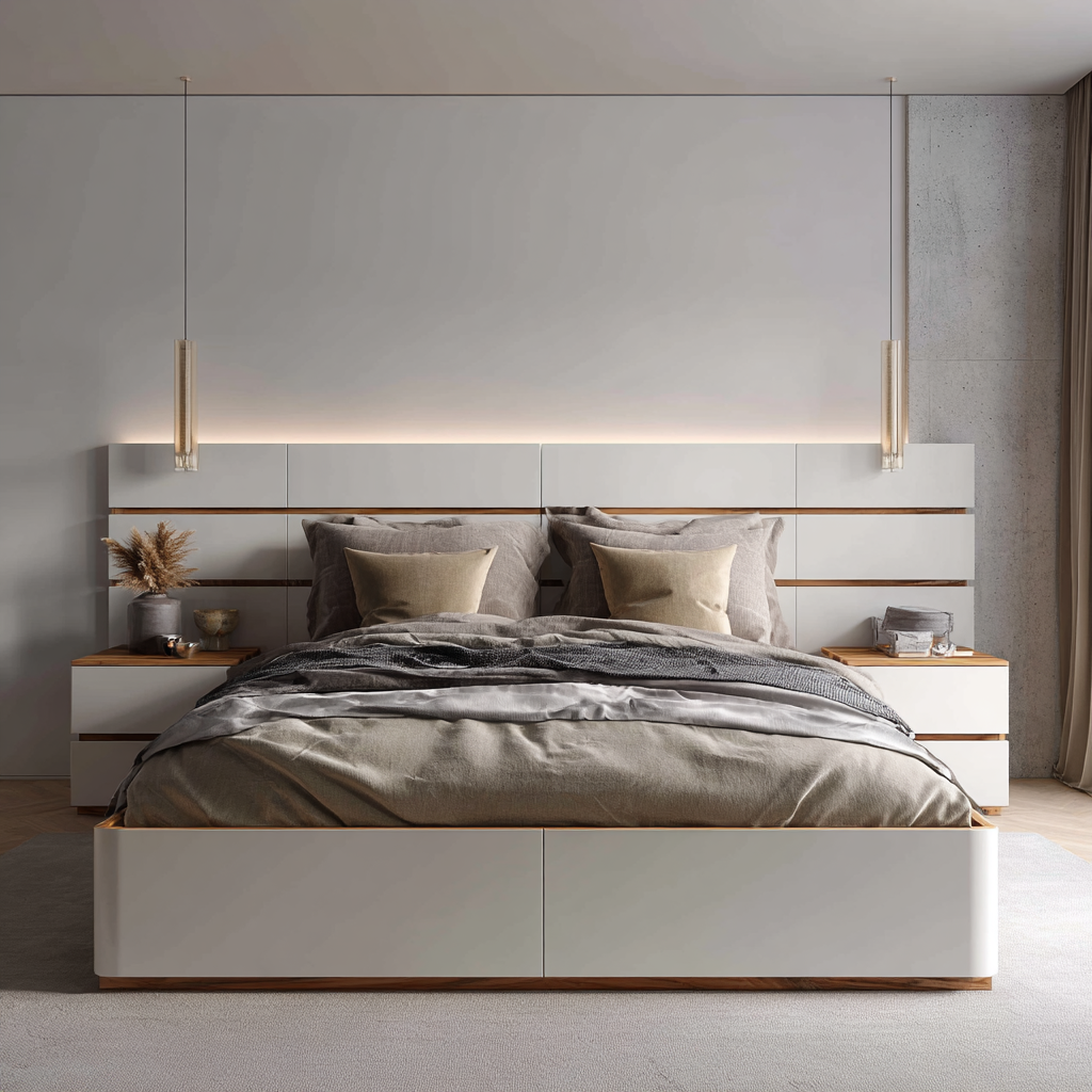سرویس خواب اسپرت سفید قهوهای با کشوهای جادار، انتخابی عالی برای کسانی است که به دنبال یک طراحی مدرن و کاربردی برای اتاق خواب خود هستند. این سرویس خواب با رنگ سفید و قهوهای روشن، فضایی آرامشبخش و شیک را به اتاق شما میبخشد. طراحی مینیمالیستی آن باعث میشود که بهراحتی با هر نوع دکوراسیونی هماهنگ شود، چه مدرن و چه کلاسیک.